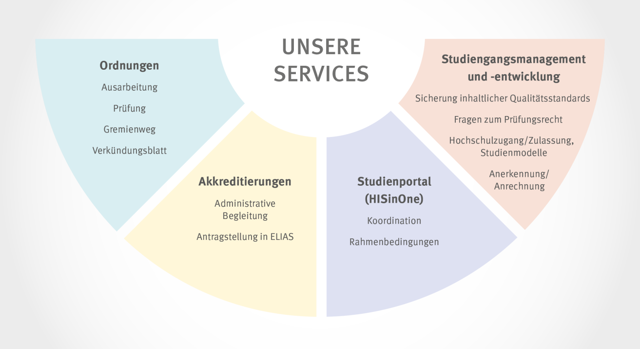 Die Stabsabteilung Studiengangsmanagement begleitet Fakultäten und Fachabteilungen bei diversen Verwaltungsprozessen als Schnittstelle zum Vizepräsidium Studium und Lehre.