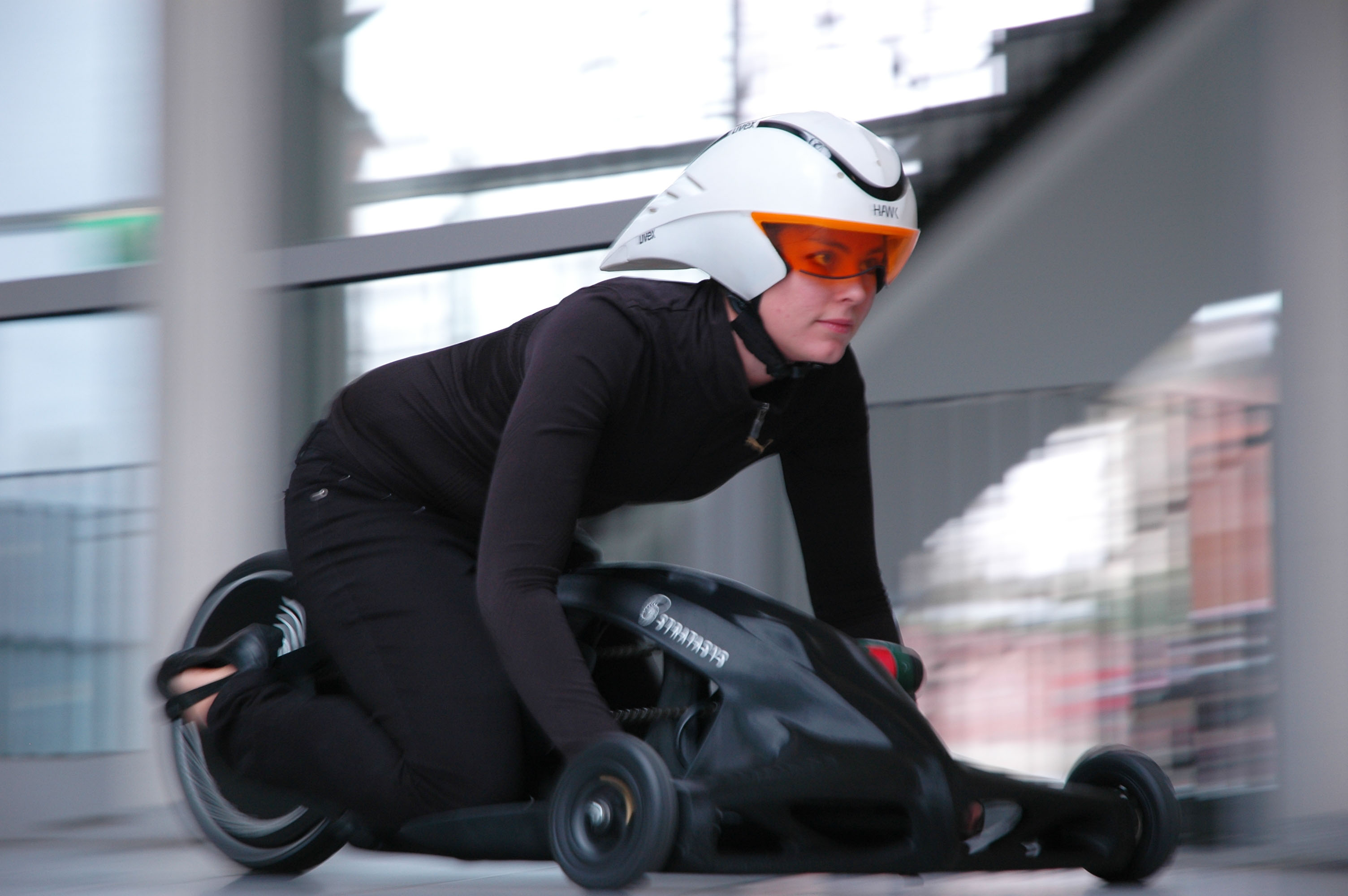 Der schwarze Racer ist eine Leichtbau-Innovation auf Rädern: Bis auf Zahnrad, Räder, Kette und einigen Schrauben wurde das Fahrzeug komplett am Computer konstruiert und vollständig im 3D-Druck gefertigt. In einem 900 x 600 x 900 Millimeter großen Bauraum wurden innerhalb von zehn Tagen 3.600 Schichten Kunststoff in einer Stärke von gerade einmal 0,25 Millimeter bei konstant 60° Celsius nacheinander aufgetragen.