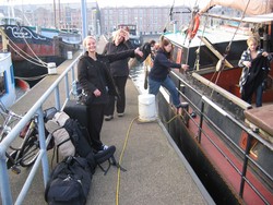 Glücklich und etwas erschöpft sehen sie aus, die acht Studierenden des Fachbereichs Konservierung und Restaurierung der HAWK und der Fachprofessor für gefasste Holzobjekte und Gemälde, Prof. Dr. Michael von der Goltz, als sie in Hildesheim aus dem Zug steigen. Hinter ihnen liegen zwei Wochen intensiven Lernens mit 20 Studierenden sowie deren Dozenten aus den Niederlanden und Finnland. Es ging um die Frage, wie man Objekte aus anderen Kulturkreisen vor dem Verfall bewahren kann und wie man mit ihren ursprünglichen, oftmals kultischen Bestimmungen heute umgeht. Auch die Unterkunft war sehr speziell: Die finnischen und deutschen Mitwirkenden wohnten auf einem typisch holländischen ‚Plattbodenschiff’ im Hafen von Amsterdam und verpflegten sich selbst.