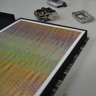 Wenn eine Digitalkamera auf dem Display abstrakte Pixelmuster anzeigt, scheint sie defekt zu sein. Was manchen ärgert, freut Thomas Wahle. Der Master-Absolvent in Grafik Design hat sich in seiner Abschlussarbeit "Short Circuited Diaries" mit Fehlerphänomenen im digitalen Alltag beschäftigt. Angefangen habe alles, so erzählt er, nachdem er einfach mal in die Elektronik gespuckt hat und das daraus entstandene Muster klasse fand. Diese Fehlermuster hat er auf große Teppiche drucken lassen, in Kooperation mit der Firma Vorwerk aus Hameln.