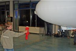 Erst wird Paul, das autonome Luftschiff, anhand von Fotos vorgestellt, und anschließend, als Höhepunkt der Veranstaltung, wechseln die Kinder in einen anderen Hörsaal, um Paul life zu erleben. Die Kinder sind beeindruckt von Luftschiff Paul in seiner Größe und Form.