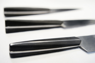 „Es passiert viel während des Entwurfs, das ist unsere Stärke“, so Hebach. Während der Fertigung fließen Stimmungen und Gefühle mit ein, was zum Beispiel beim Zeichnen einer Linie am Computer nicht geschehe. Ein Beispiel für die hohe Funktionalität der Messer in Stahl und Damaszenerstahl sind die nahezu fließenden Übergänge zwischen Heft und Klinge, welche der Handhabung eines Messers entgegenkommen: „…denn bei der Nutzung eines Messers setzen die Finger meist auf der Klinge auf und können so die Bewegung besser ausführen.“ Kloess widmet sich in ihren Objekten verstärkt der Silberkunst. Das Material bringe eine „besondere Spannung in die Form“ und erlaube sehr exaktes Ausarbeiten. Die Geste, die Bewegung der späteren Nutzung, denkt Kloess bei der Fertigung von Anfang an mit.