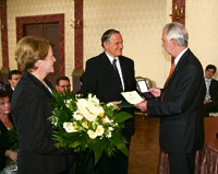 Thüringens Wirtschaftsminister Jürgen Reinholz hat am Dienstag in der Thüringer Staatskanzlei das Verdienstkreuz der Bundesrepublik Deutschland an Ralf Schwager überreicht.