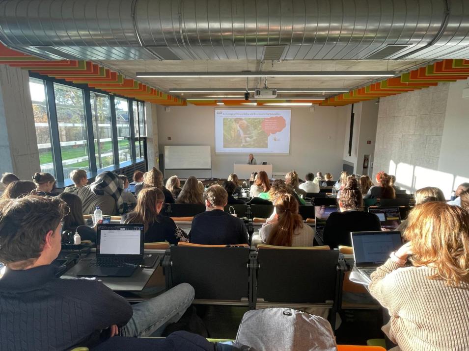 Von Campus und Räumlichkeiten der HOGENT: Es ist immer wieder spannend, an anderen Hochschulen zu sein und neue Eindrücke zu gewinnen. Eine Inspiration ist beispielsweise ein Regal mit (Brett-)Spielen, das im Foyer die Möglichkeit bietet, unterschiedliche Spiele zu nutzen. Ein weiteres Beispiel ist ein Outdoor-Seminarraum mit Tafel für die Lehre bei schönem Wetter.