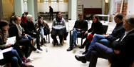 Den nächsten Tag starteten wir wieder in der ehemaligen Staatsbank. Da Musik und Gesang in dem Projekt eine wichtige Rolle spielen, wurde die Exkursion von Herrn Prof. Dietze, ehemaliger Professor der Fakultät „Bauen und Erhalten“, begleitet. So erhielten wir vor Ort eine Einführung zum Thema Akustik im Raum aus fachkundigem Mund. Nach dem Vortrag wurden Fragen geklärt und Informationen ausgetauscht. Frau Fischer, die Chorleiterin des Chores Schola Cantorum, der die Räume in der Notenbank beziehen soll, schilderte ihre Anforderungen an die Räume. Danach ging es weiter zum Musikgymnasium Schloss Belvedere. Es wurden viele verschiedene Räume besichtigt, in denen Raumakustikmaßnahmen stilvoll umgesetzt wurden. Vor allem der große Musiksaal begeisterte den gesamten Kurs.