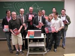 Während seines Vortrages wäre im großen Hörsaal die sprichwörtliche Stecknadel ganz sicher zu hören gewesen – wär’ denn eine auf den Boden gefallen. Mit großer Spannung hatten die Studierenden des Bachelor-Studiengangs Wirtschaftsingenieur Infrastruktur den Ausführungen und Erfahrungen aus der Praxis gelauscht. Prof. Dr. Dieter Grommas und Prof. Dr. Olaf Paulsen bedankten sich für das Engagement des Tönsmeier-Geschäftsführers, der seinerseits ein Geschenk für die Hochschule, genauer die Studierenden, mitgebracht hatte. Schäkel übergab eine Buchspende an die beiden Professoren. Sie hatten sich einen „Klassensatz“ zweier Standardwerke für die Bibliothek der HAWK gewünscht.