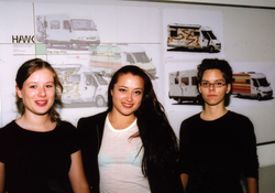 Zur Freude aller konnte die Firma Bürstner, Europas zweitgrößter Reisemobil Hersteller, dafür gewonnen werden, ein Reisemobil leihweise im Hof der HAWK aufzustellen – als Anschauungsobjekt für die virtuelle multi-mediale Darstellung der Farbdesign-Vorschläge und für die Prüfung auf Umsetzbarkeit der Entwürfe.