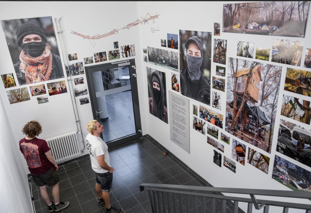 Die Ausstellung verbindet verschiedene Medienformate: eine großflächige Fotocollage, einen Dokumentarfilm und in einem 360°-Rundgang hat man die Möglichkeit, noch einmal durch Tümpeltown zu gehen. Highlight der Ausstellung ist ein eingerichtetes Baumhaus, an dessen Decke ein experimenteller Animationsfilm aus 3D Scans projiziert wird. Der Ausstellungsraum mit seinen originalen Bannern und Seilen wurde in der Hoffnung gestaltet, Verständnis für die Klimabewegung zu fördern.